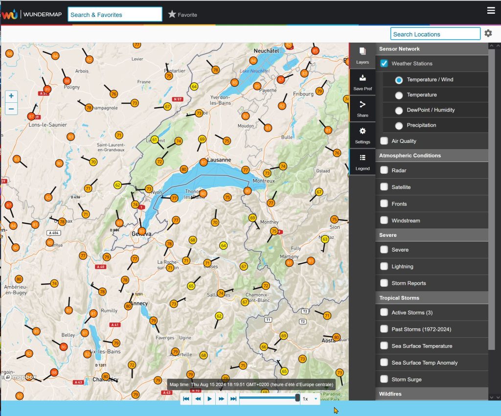 Une carte interactive est disponibles à l’adresse : https://www.wundergrund.com/wundermap